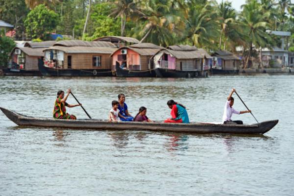 Départ pour Alleppey. Installation dans un house-boat privé et puis journée découverte des backwaters et les villages alentours. Nuit dans l’house-boat.